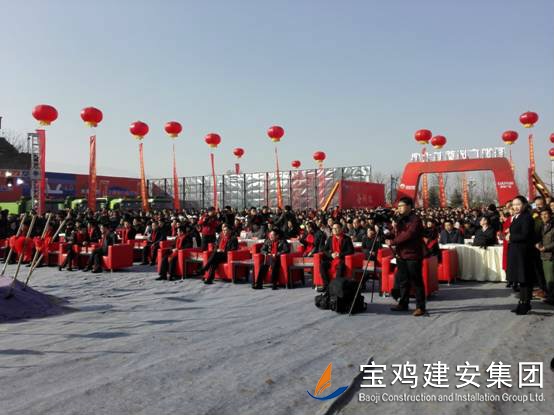 2018年1月16日上午,寶雞新城吾悅廣場項目奠基儀式在高新區舉行,該項目是繼恒大、碧桂園之后,寶雞高新區引進的又一個千億級商業航母——新城控股集團在西北地區建設的第二個一站式綜合廣場。奠基儀式上,公司董事長景常榮代表施工單位致辭,新城控股集團副總裁陸建華代表建設單位致辭,高新區黨工委書記、管委會主任郝晉升代表政府單位致辭。高新區管委會領導、新城控股集團領導、寶雞建安集團董事長、寶雞市中小企業協會領導等為項目培土奠基。公司組織管理人員、施工人員共計300人參加了奠基儀式。