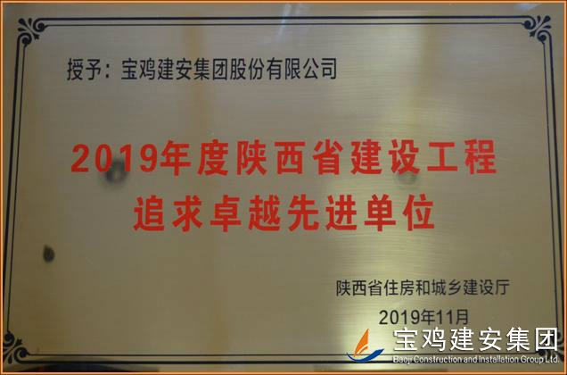 2019年11月12日,在西安召開的2019年全省文明工地暨施工揚塵防治現場觀摩會上再傳捷報,我司被陜西省住房和城鄉建設廳授予“2019年度陜西省建設工程追求卓越先進單位”、由我司承建的太白縣城市綜合體項目-酒店及球館工程榮獲2019年陜西省建設工程“長安杯”大獎。