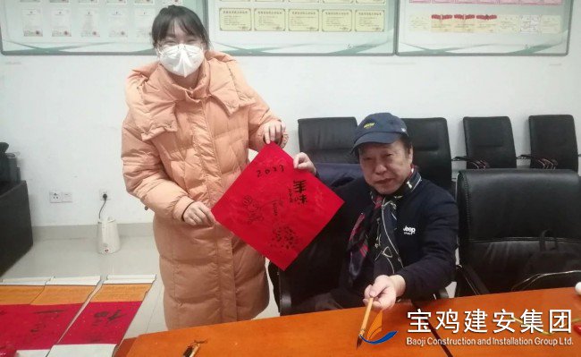 “虎嘯傳捷報,玉兔迎春暉”,在癸卯新春即將到來之際,公司工會特邀我市著名書畫家、篆刻家、寶雞印社名譽社長、寶雞市直機關書畫協會副會長兼秘書長張寶文老師蒞臨建安大廈,為廣大員工精心繪制生肖畫、書寫新春聯,將春節的喜慶與祥和及時送到了廣大員工的身邊...... “虎嘯傳捷報,玉兔迎春暉”,在癸卯新春即將到來之際,公司工會特邀我市著名書畫家、篆刻家、寶雞印社名譽社長、寶雞市直機關書畫協會副會長兼秘書長張寶文老師蒞臨建安大廈,為廣大員工精心繪制生肖畫、書寫新春聯,將春節的喜慶與祥和及時送到了廣大員工的身邊...... “萌萌噠”的玉兔挑著燈籠歡笑著,蹦跳著,燈籠上系著鞭炮、掛著糖葫蘆、閃著福星,飄逸灑脫的福字和“諸事和順、兔年幸福”的吉祥語與英語文“Happy new year”“Best wishes”中西合璧、巧妙結合,將辭舊迎新的節慶氣氛濃縮在一張張中國紅的斗方宣紙與節日掛歷上,濃濃的年味撲面而來,帶給大家無盡的喜悅與祝福……